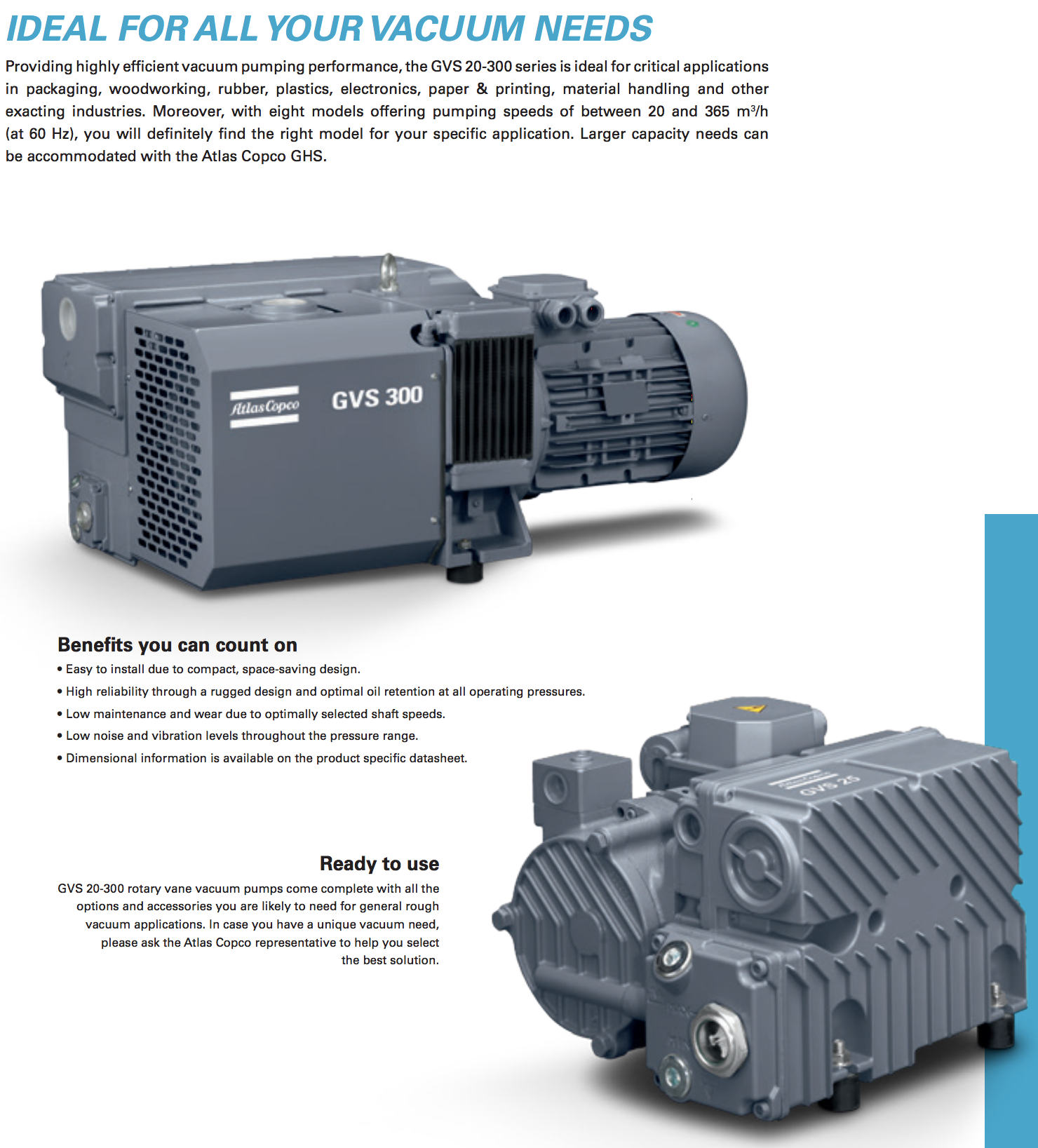 At Atlas Copco we constantly aim to innovate, improve performance and target new application areas. The GVS 16-630 A series continues this principle by applying proven oil-sealed rotary vane technology with a robust, highly regarded and technologically advanced market leading design.
