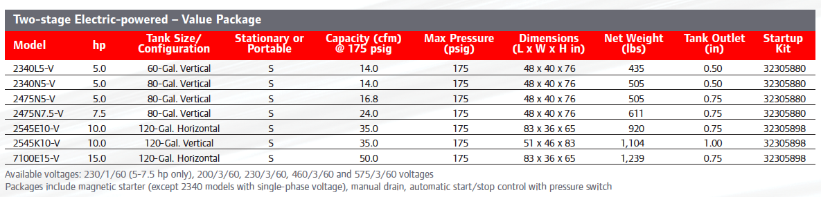 - 175 psig maximum operating pressure for applications requiring high air capacity and pressure
