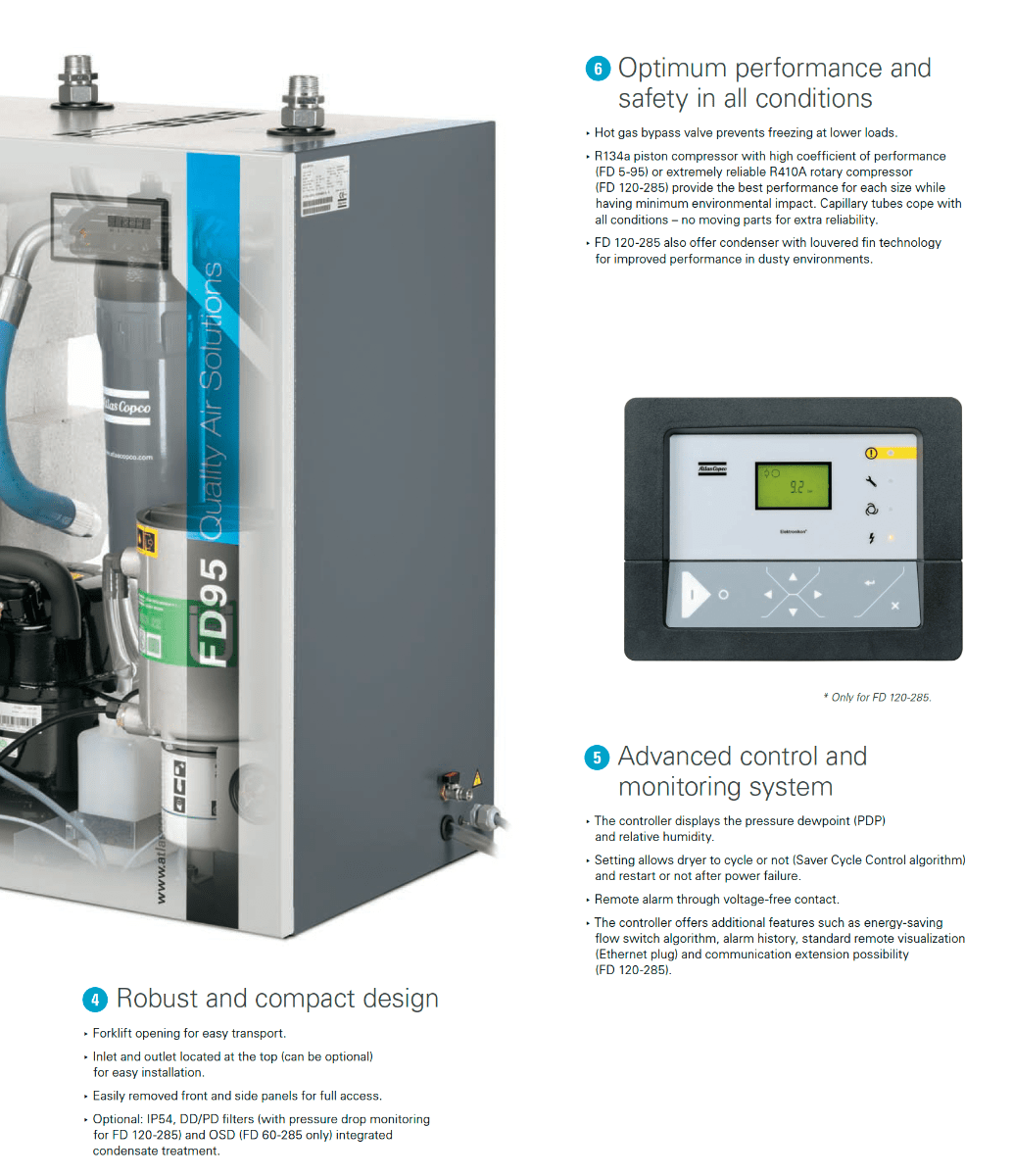 Atlas Copco 159 CFM Cycling Air Dryer Sized for 30 HP Air Compressor | FD70 230/1/60 Saver Cycle | 8102224824