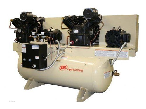 Ingersoll Rand duplex reciprocating air compressors offer two individual compressor pumps and two motors mounted on a single tank, providing 100% built-in backup or additional air power for those larger capacity jobs. The Duplex is ideal in applications where available power does not allow for a single larger compressor. The latest generation of Ingersoll Rand duplex reciprocating compressors has the legendary Type 30 pump with value added features in a space saving design suitable for those tight spaces. The duplex packages are available in Value and Premium configurations with factory fitted options ready-to-use.