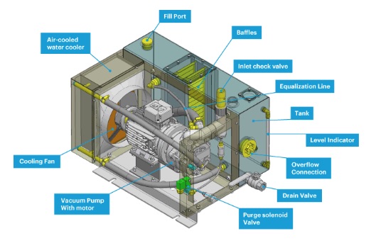 The Airtech 3AL vacuum pump uses proven liquid ring technology in an air-cooled self-contained package, offering reliable operation with only a small amount of make-up water needed for some applications.