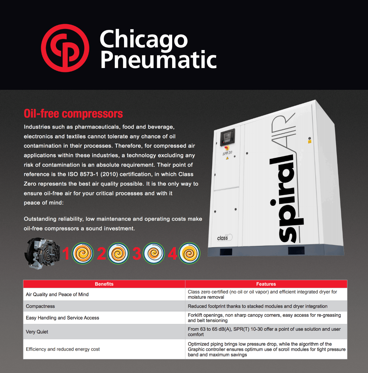 Chicago Pneumatic 22 HP SpiralAIR Oilfree Rotary Scroll Air Compressor 65.7 CFM, 116 PSI, 3-Phase | SPR22 | 8153605020