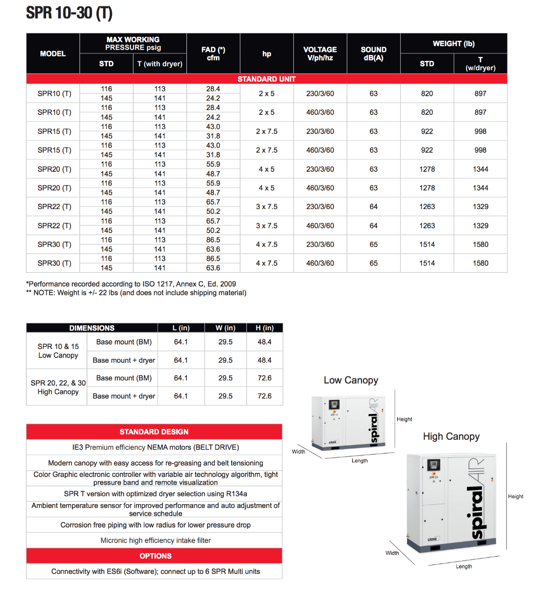 - From 63 to 65 dB(A), SPR 10-30 offers a point of use solution and user comfort