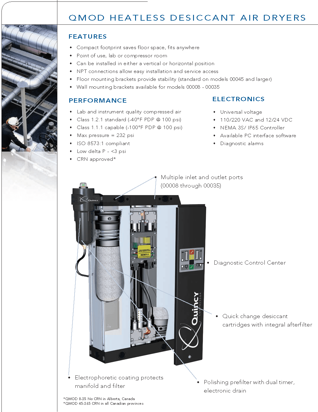 Quincy 25 CFM QMOD Heatless Desiccant Air Dryer .375" NPT | 115/1/60 Volt | QMOD00025