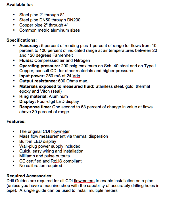 3" Flow Meter - 1200 CFM Range Air Flow Meters for Air Compressors | CDI | 5400-30
