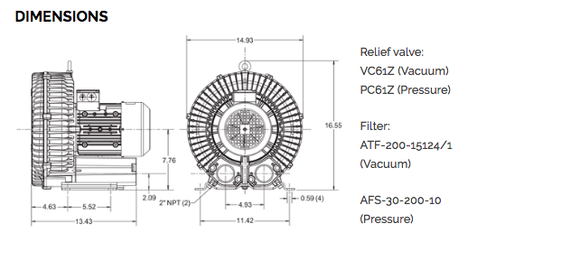 AIRTECH 300 CFM, 4.60 HP Vacuum/Pressure Regenerative Blower (-84 Vacuum H2O or 76 Pressure H2O) | 3BA1630-7AT26