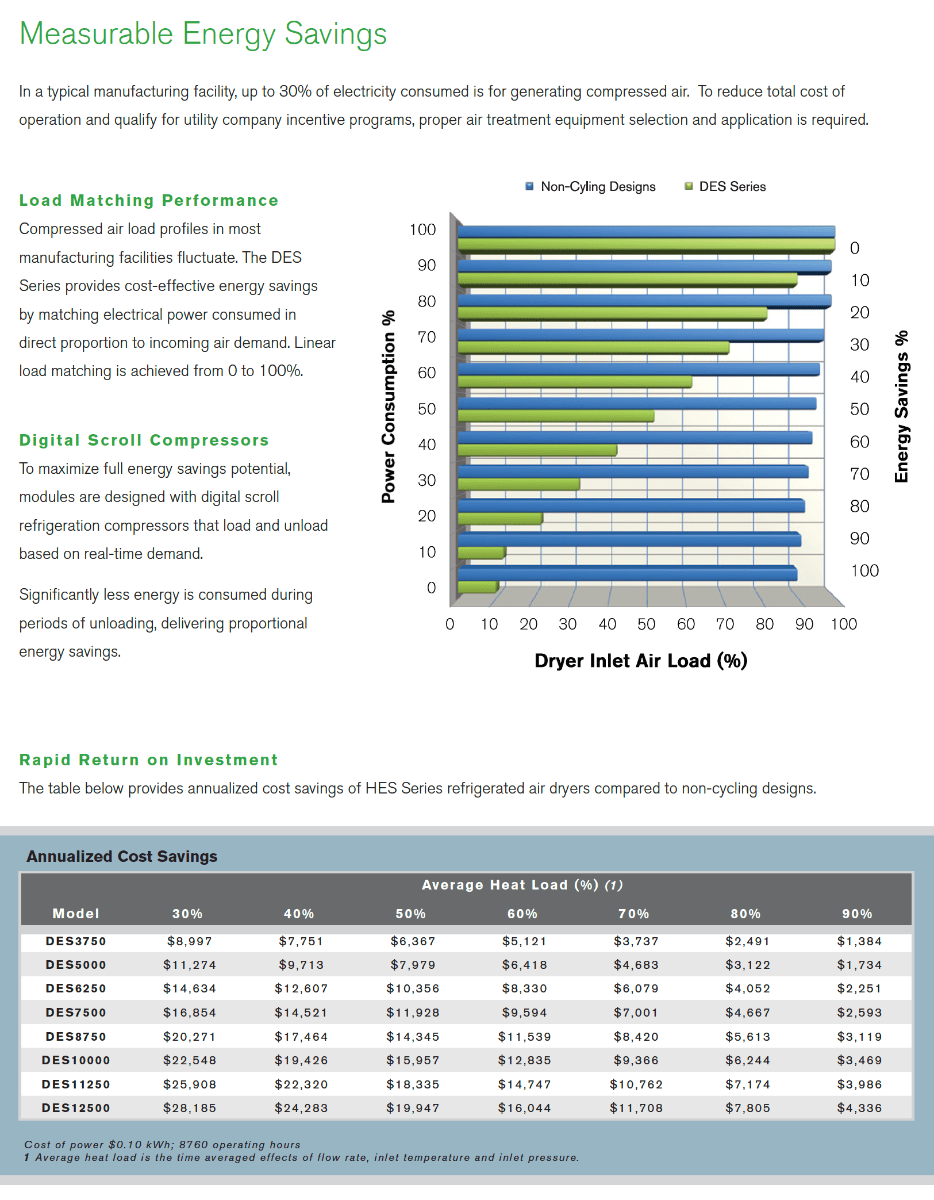- Demonstrating our commitment to continuous development of sustainable solutions, the DES Series significantly lowers total cost of operation by consuming electrical power (kWh) in direct proportion to real-time demand.