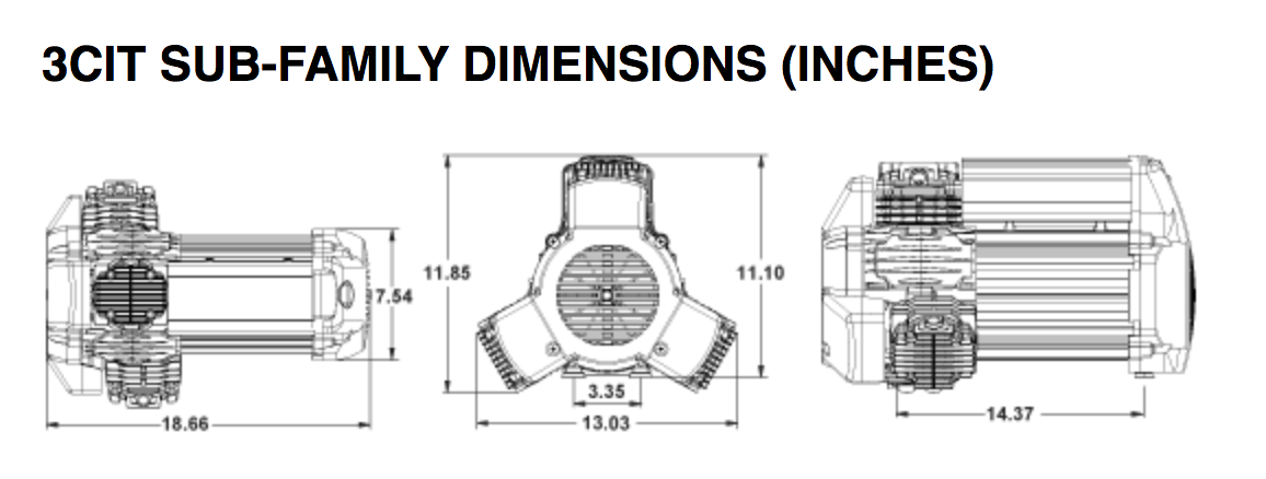 3CIT-1/3, 2.5 HP Dry Oilless Direct Drive Air Compressors, 13 SCFM, 125 PSI, 230/460/3/60, Airtech USA