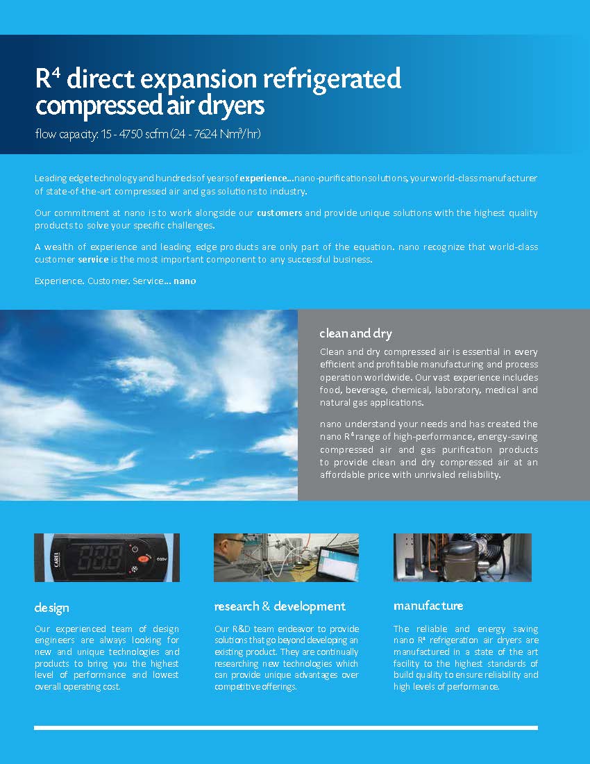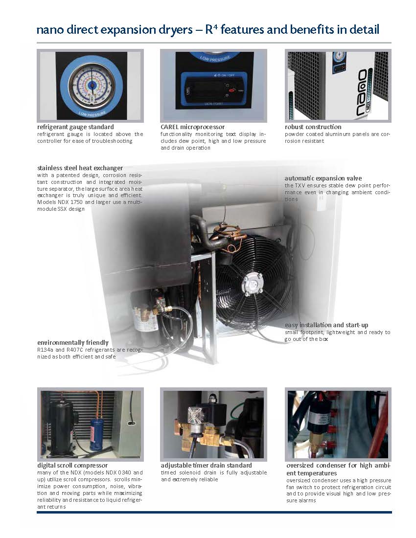 The NXC cycling refrigerated air dryers are the next generation of thermal mass dryers from nano. Unique dual transfer technology (DTT) is employed within the NXC dry thermal mass to save energy and money by effectively treating the compressed air in accordance with actual air flow.