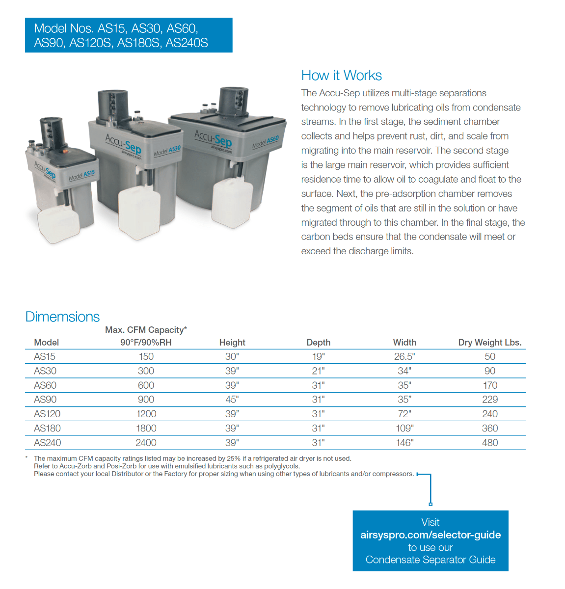 Air Systems Products Accu-Sep, AS60, 600 Max Capacity (CFM), Oil/Water Separation System