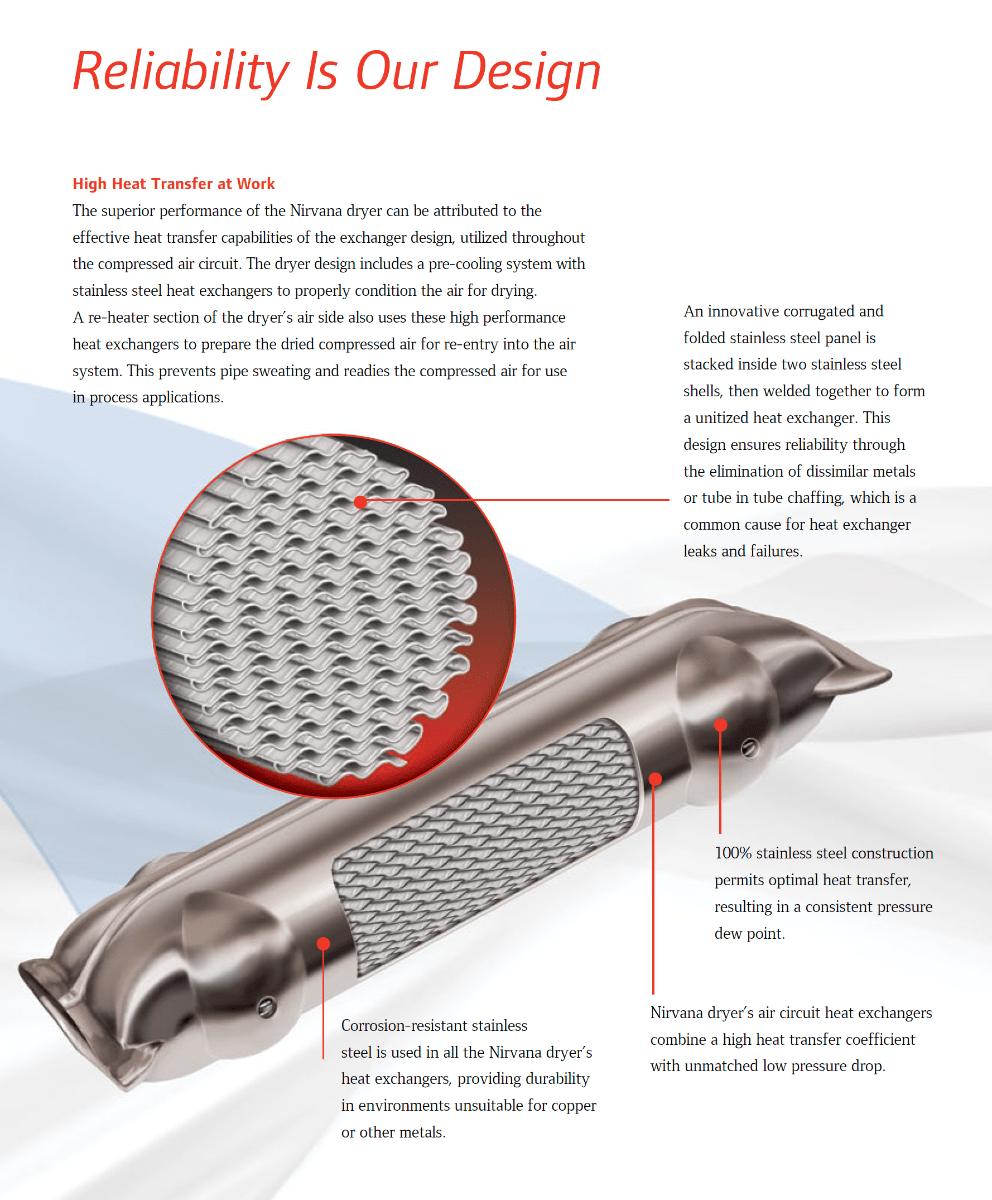 • Efficient Operation: Corrosion-resistant stainless steel heat exchanger design provides optimal heat transfer, ensuring low pressure dew point and low pressure drop