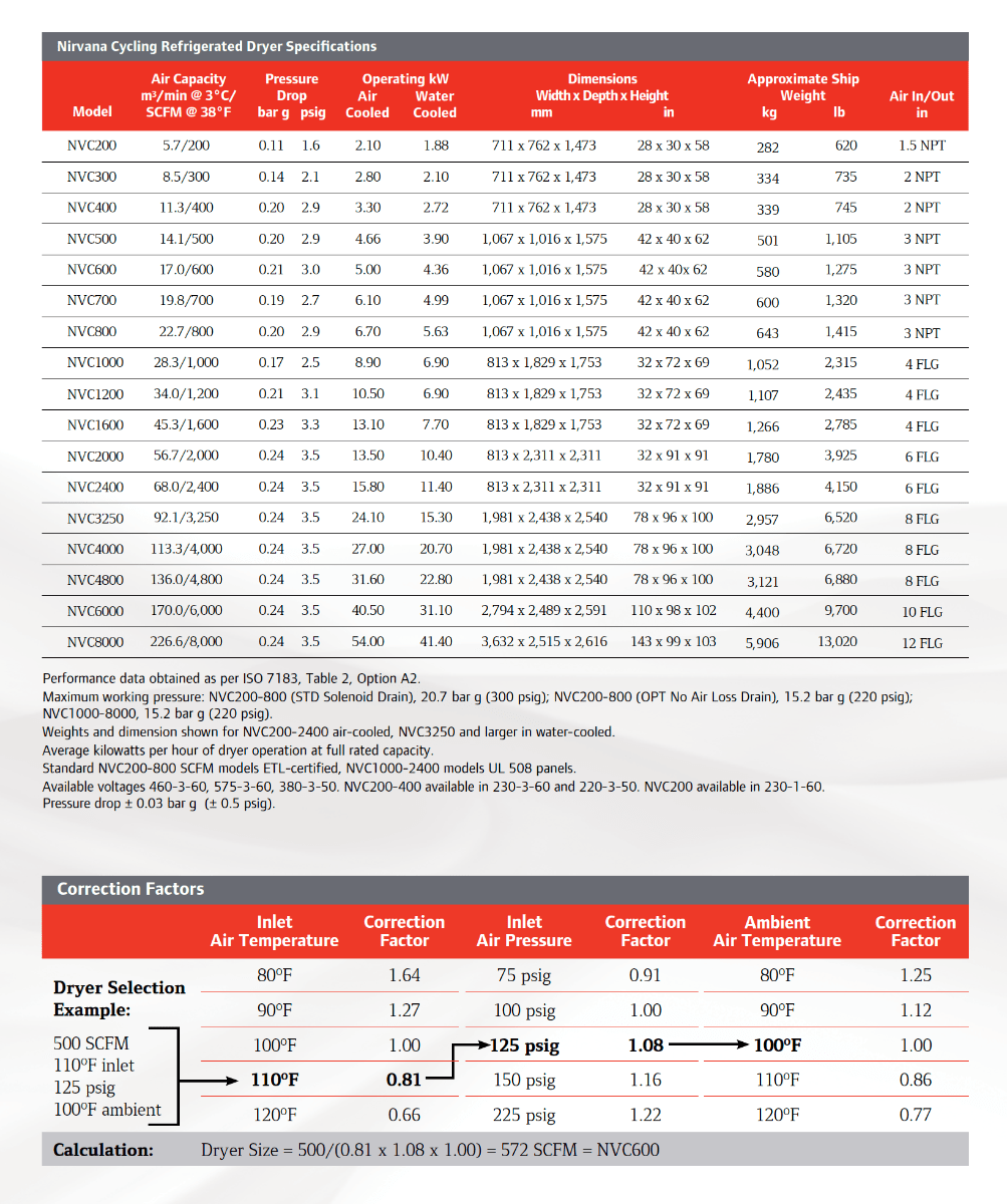 Ingersoll Rand NVC700A400, 700 CFM Nirvana Cycling Refrigerated Air Dryer, 460/3/60