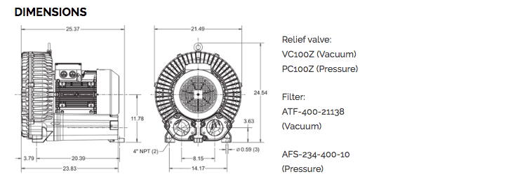 710 CFM, 28.60 HP Vacuum/Pressure Regenerative Blower (-153 Vacuum H2O or 169 Pressure H2O) | 3BA1900-7AT36