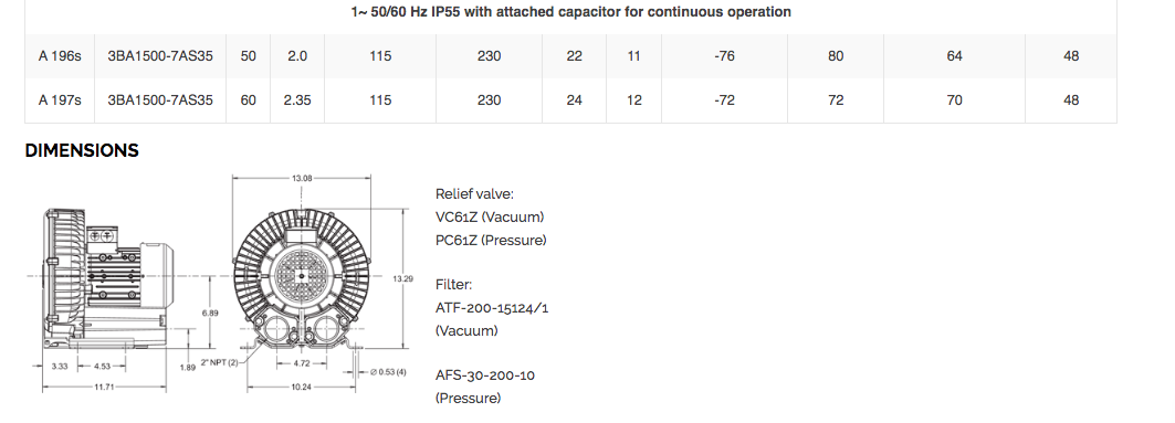 AIRTECH 150 CFM, 3.40 HP Vacuum/Pressure Regenerative Blower (-104 Vacuum H2O or 116 Pressure H2O) | 3BA1500-7AT36