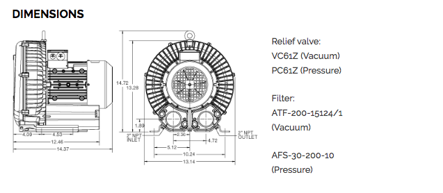 AIRTECH 195 CFM, 3.75 HP Vacuum/Pressure Regenerative Blower (-64 Vacuum H2O or 60 Pressure H2O) | 3BA1530-7AT26
