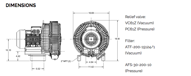 AIRTECH 350 CFM, 11.50 HP Vacuum/Pressure Regenerative Blower Two Stage (-108 Vacuum H2O or 120 Pressure H2O) | 3BA1640-7AT56