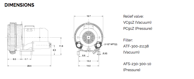 AIRTECH 360 CFM, 17 HP Vacuum/Pressure Regenerative Blower Two Stage (-124 Vacuum H2O or 141 Pressure H2O) | 3BA1840-7AT36