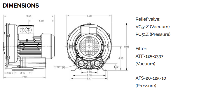 AIRTECH 42 CFM, 0.38 HP Vacuum/Pressure Regenerative Blower (-40 VAC H2O or 40 Pressure H2O) | 3BA1200-7AT06