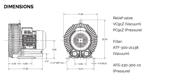 AIRTECH 500 CFM, 11.50 HP Vacuum/Pressure Regenerative Blower (-108 Vacuum H2O or 104 H2O) | 3BA1830-7AT26