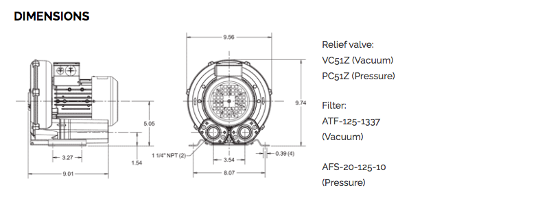 AIRTECH 74 CFM, 0.6 HP Vacuum/Pressure Regenerative Blower 1-Phase (-52 Vacuum H2O or 56 Pressure H2O) | 3BA1300-7AS15