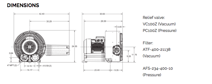 AIRTECH 780 CFM, 25.50 HP Vacuum/Pressure Regenerative Blower Two Stage (-136 Vacuum H2O or 120 Pressure H2O) | 3BA1910-7AT26