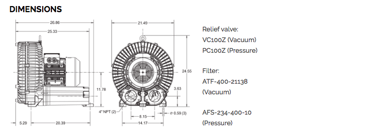 AIRTECH 960 CFM, 13.10 HP Vacuum/Pressure Regenerative Blower (-32 Vacuum H2O or 28 Pressure H2O) | 3BA1930-7AT06