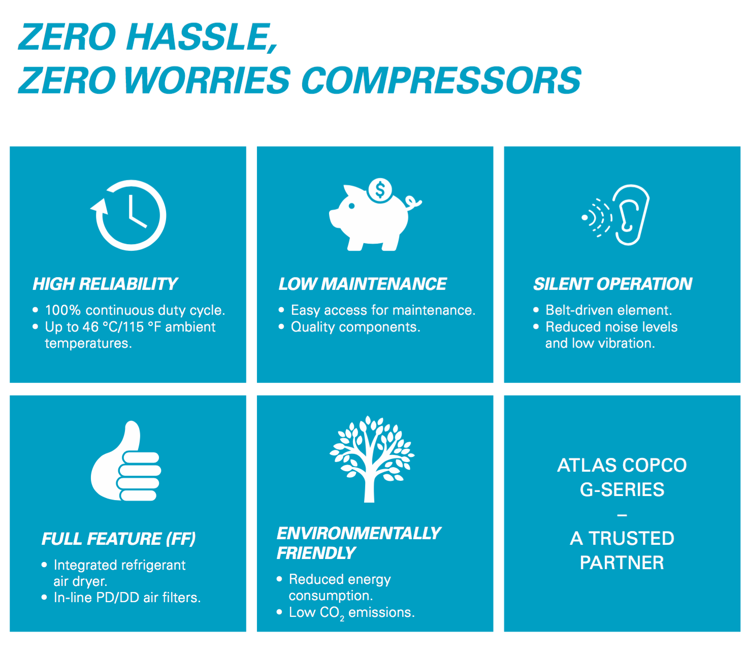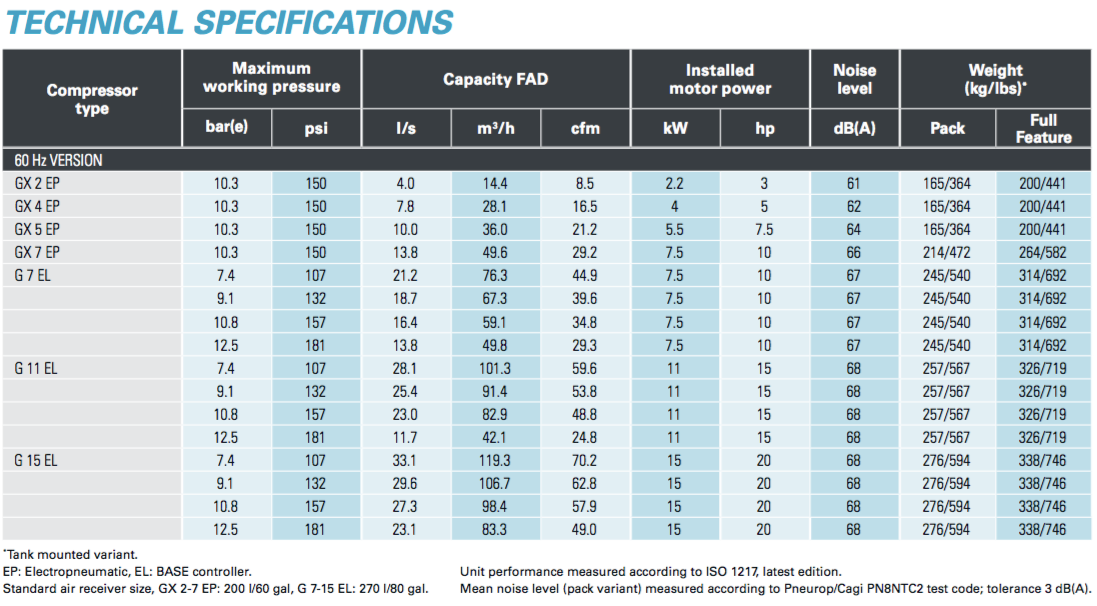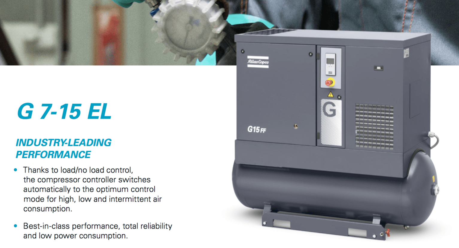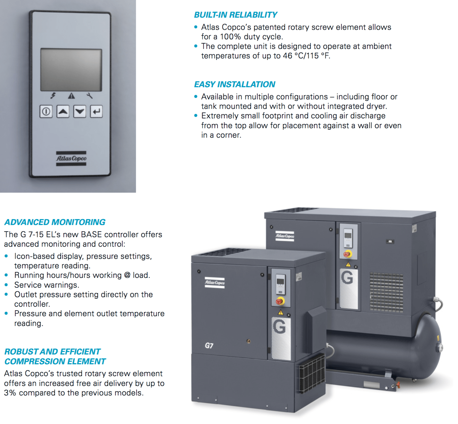 Atlas Copco 15 HP Rotary Screw Air Compressor G11-150 AP 208-230/460, 71 Gallon Tank (No Air Dryer) | 8153294601