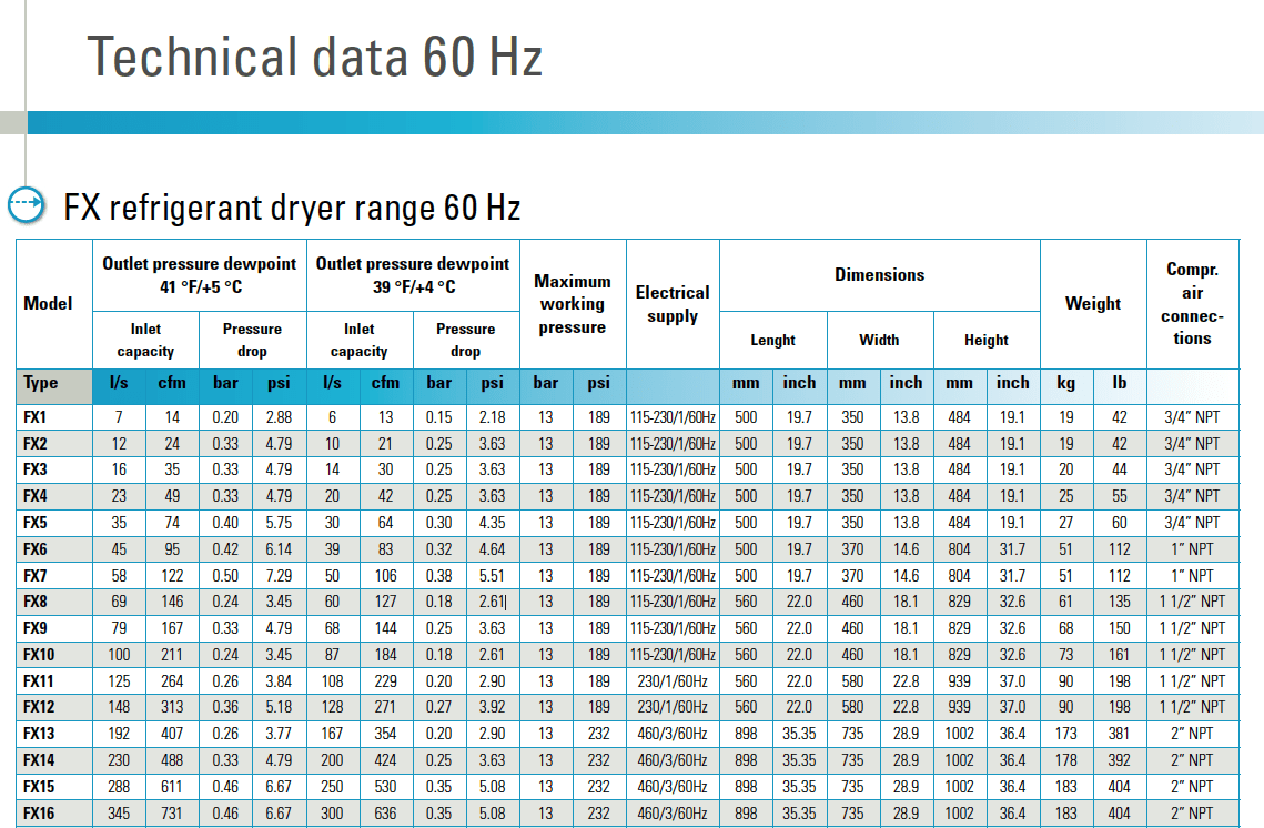 FX Non-Cycling Refrigerated Air Dryers