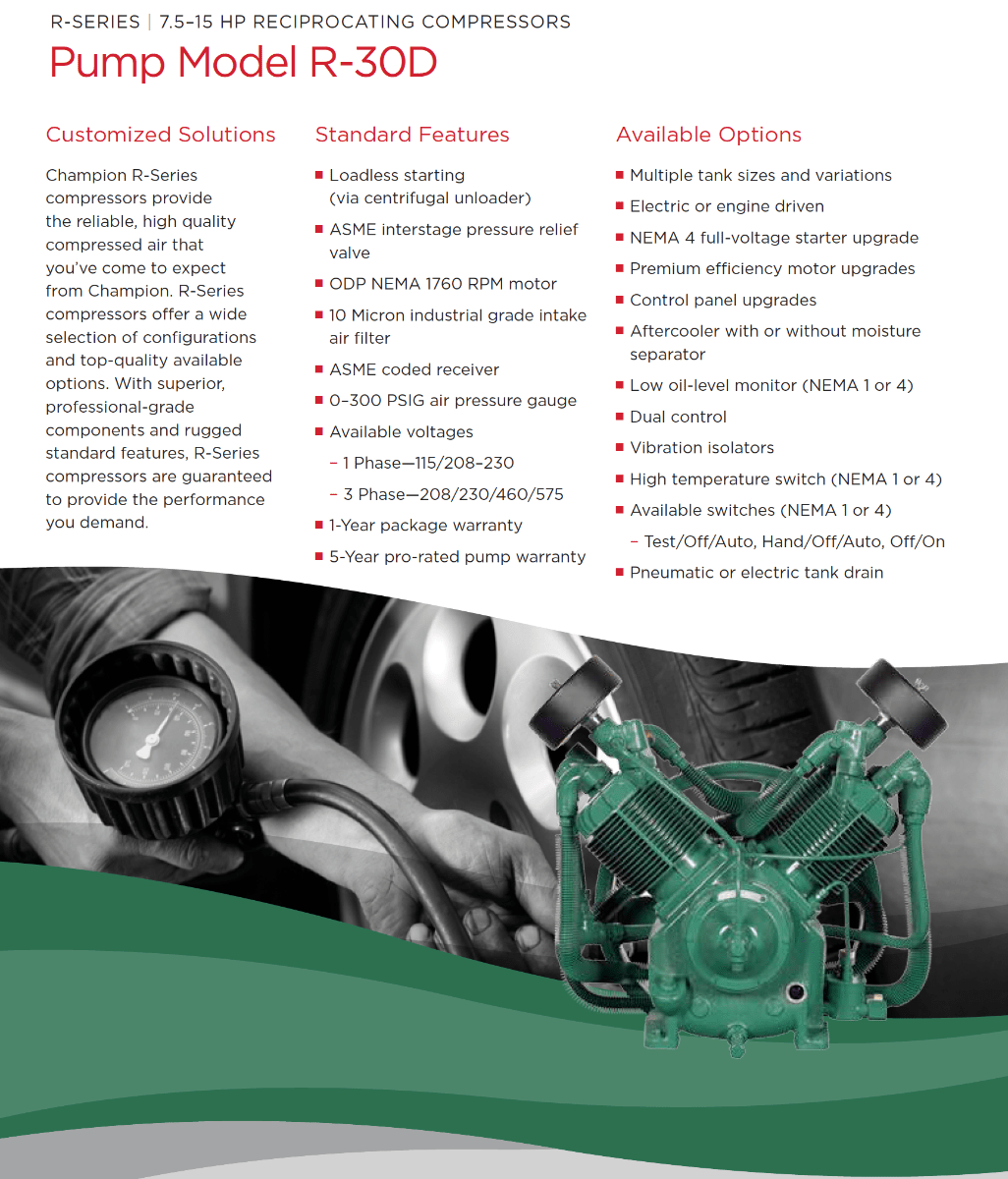 Loaded with rugged features, the Champion R-Series splash-lubricated compressors deliver high performance, long life and tremendous value.