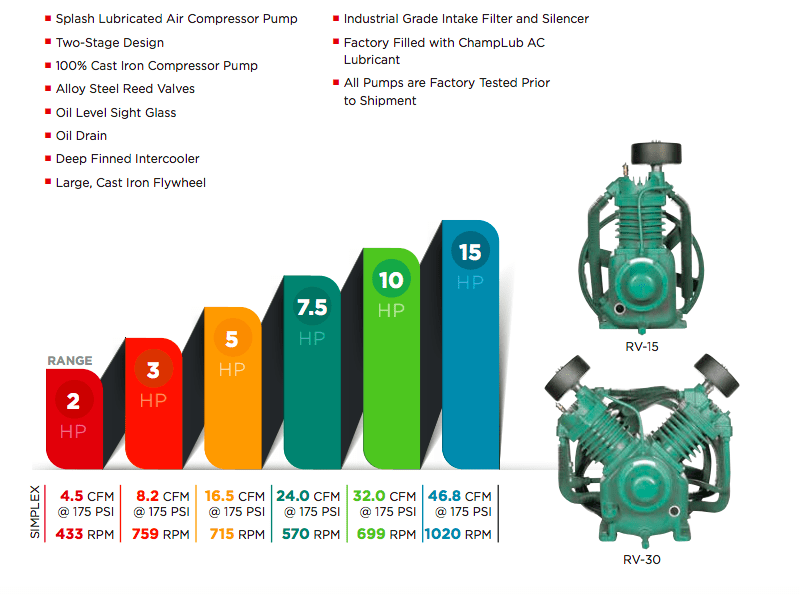 Champion 10 HP Air Compressor Two Stage, 36.6 CFM @ 125 PSI, 820 RPM, 120 Gallon Horizontal Air Tank, 208-Volt, 3-Phase | HRV10-12