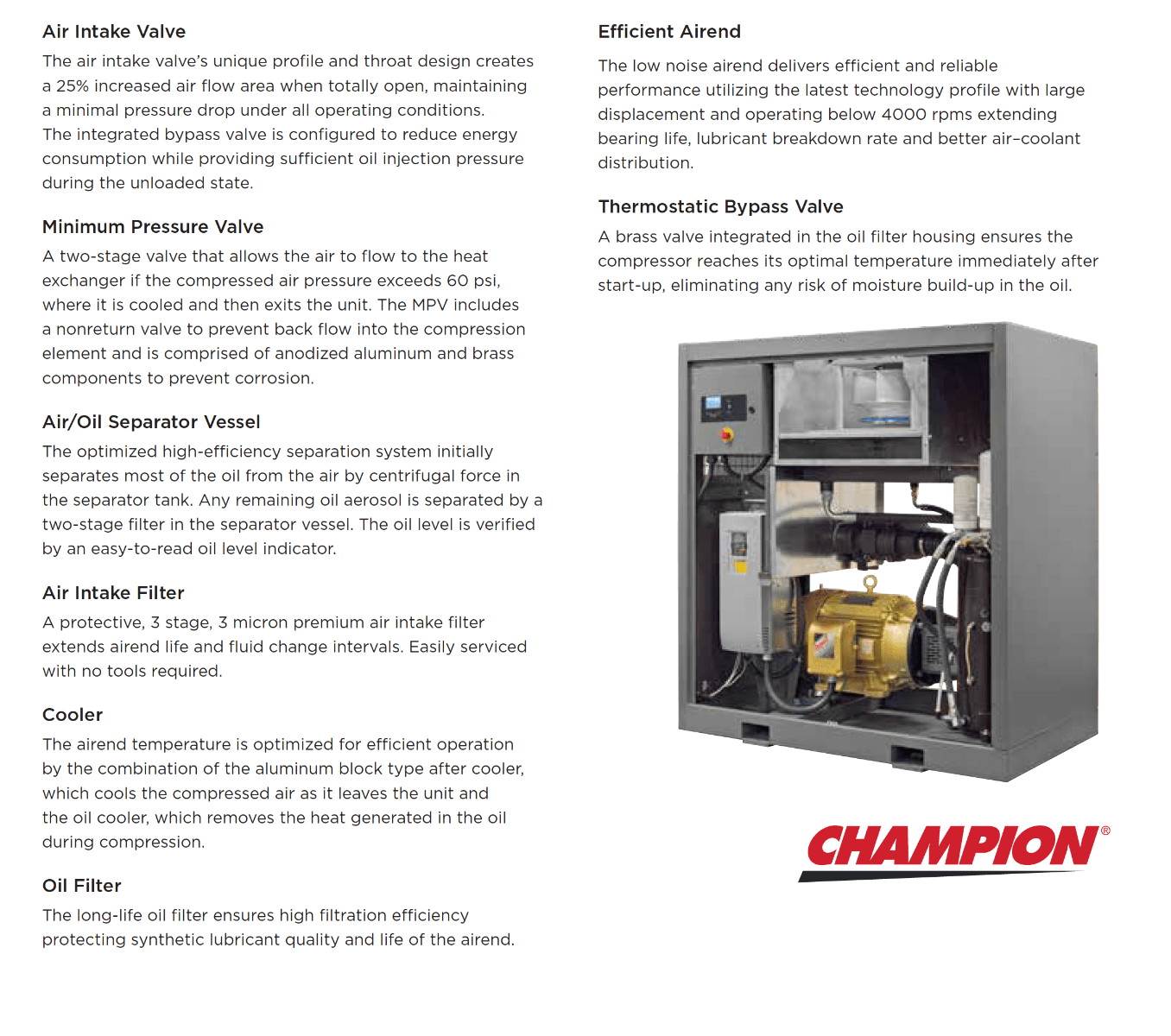Champion 75 HP Rotary Screw Air Compressor 460/3/60 Volt | D75