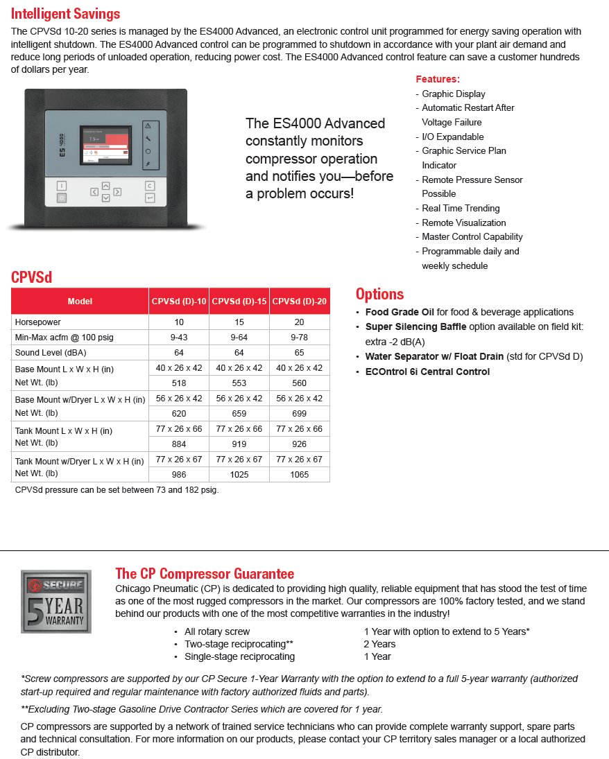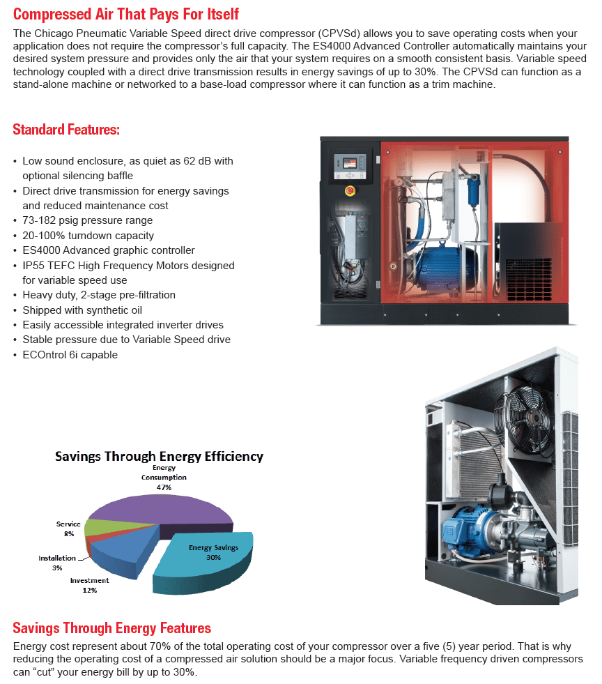 Chicago Pneumatic CPVSd 15 BM, 15 HP Rotary Screw Air Compressor VSD, 9 - 64 CFM | 4152018978
