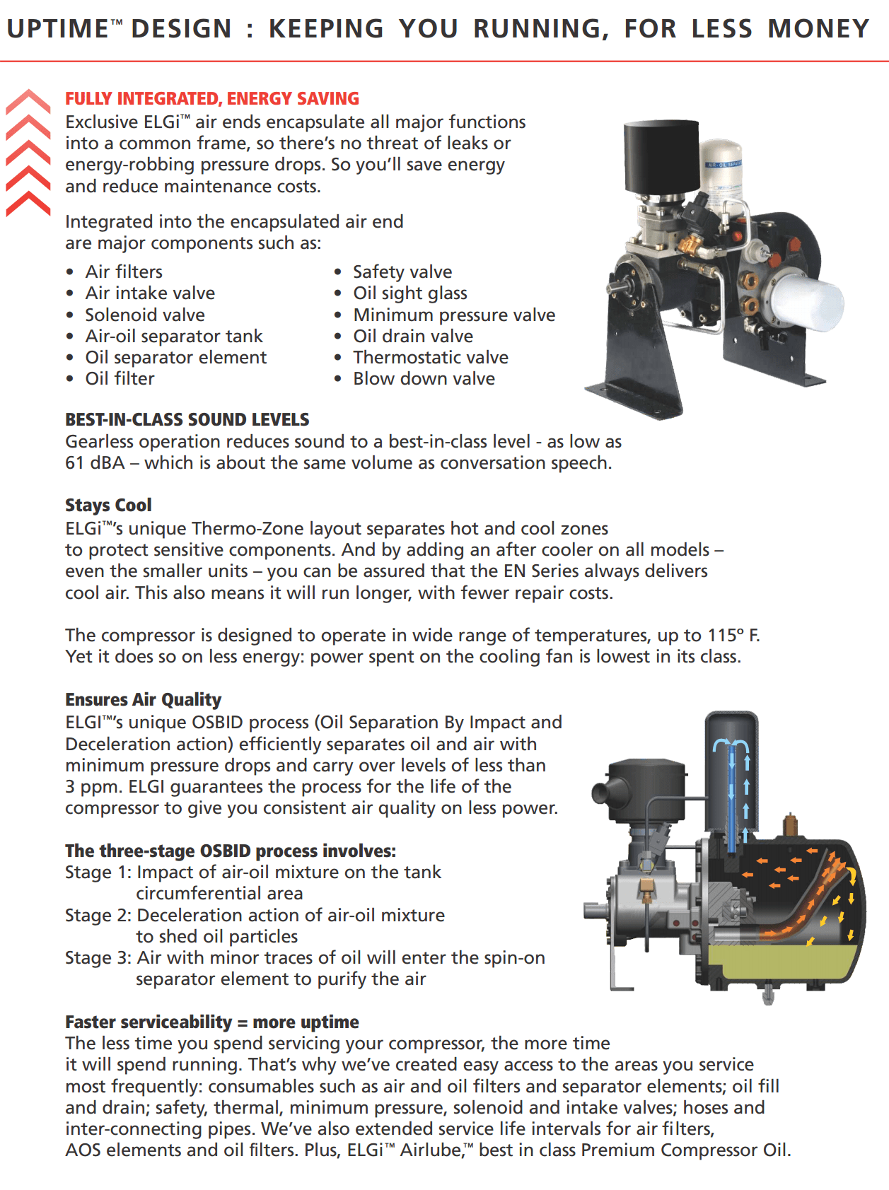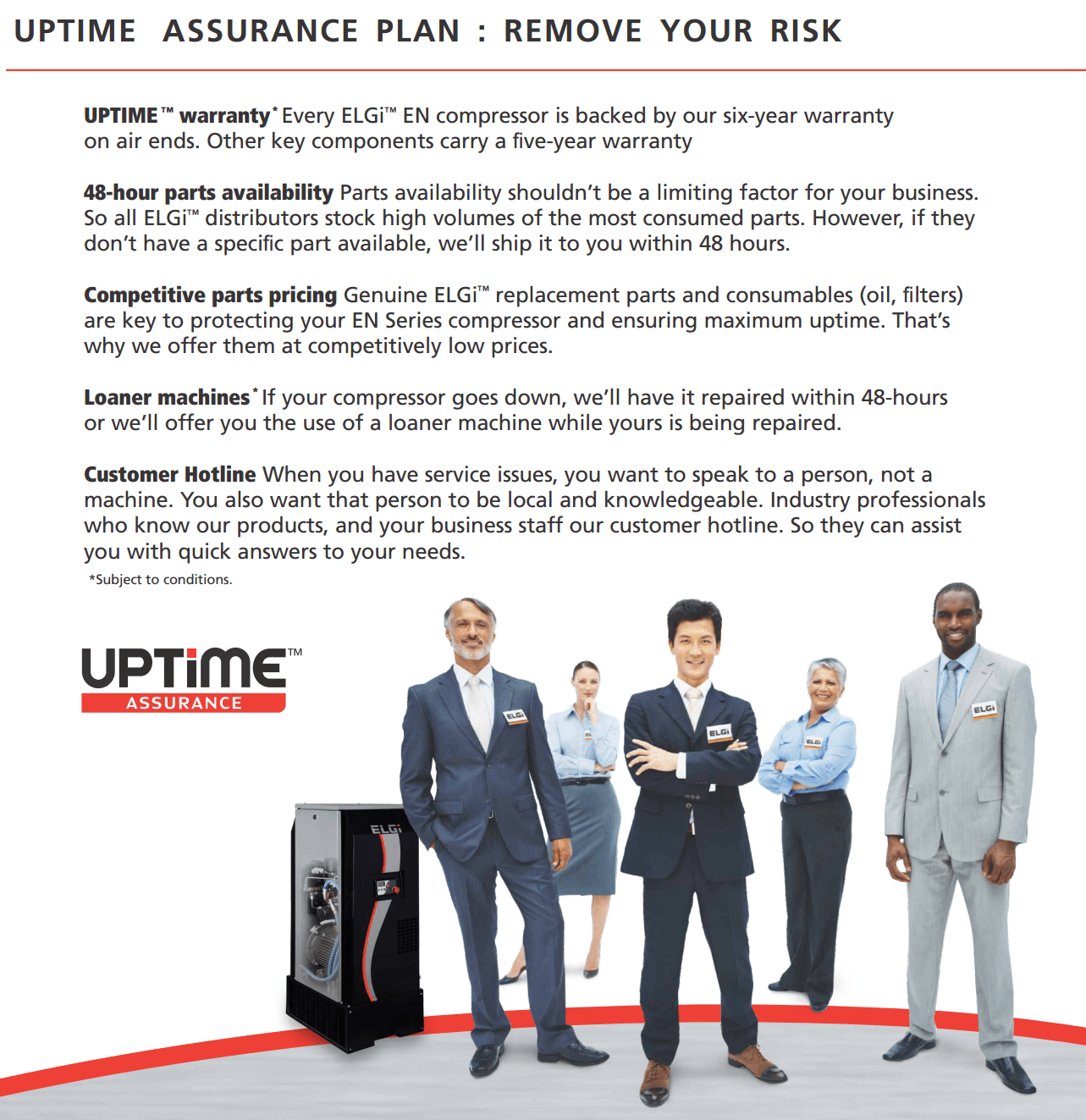 BUILT IN BACK UP with the ELGI EN Series Duplex Air Compressors - The BEST Warranty in it's class.