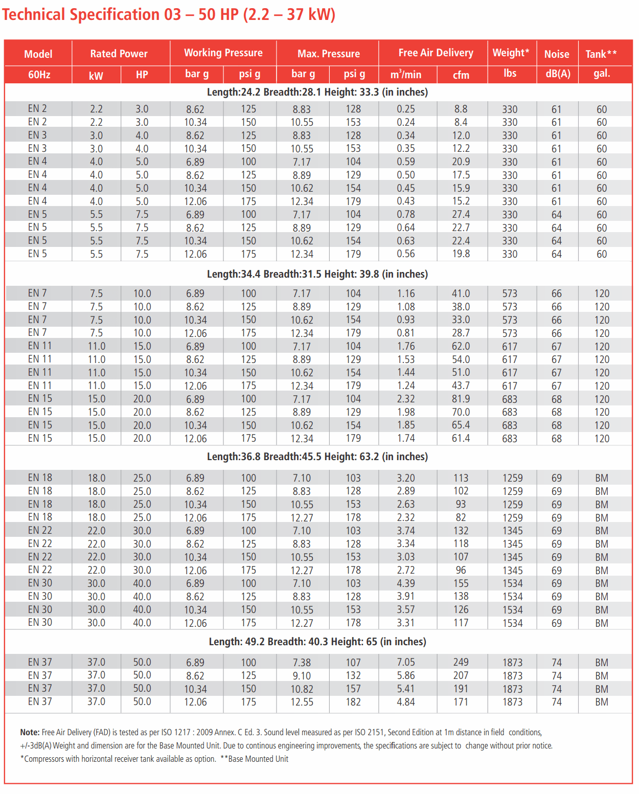 ELGI Duplex 15 HP Rotary Screw Air Compressor 110 CFM @ 125 PSI, 208-230/460-Volt, 3-Phase | EN11-125-120Q-A2A