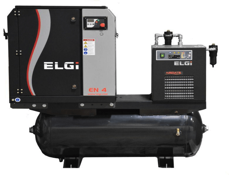ELGI 5 HP Rotary Screw Air Compressor offering 19.3 CFM @ 125 PSI, 60 Gallon Air Tank with Air Dryer 208-230/460-Volt, 3-Phase | EN04-125-60T