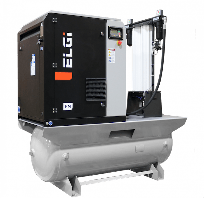 ELGI 5 HP Rotary Screw Air Compressor offering 18 CFM @ 125 PSI, 60 Gallon Air Tank with DESICCANT Air Dryer, 230-Volt, 1-Phase | EN04-125-60T-K2J