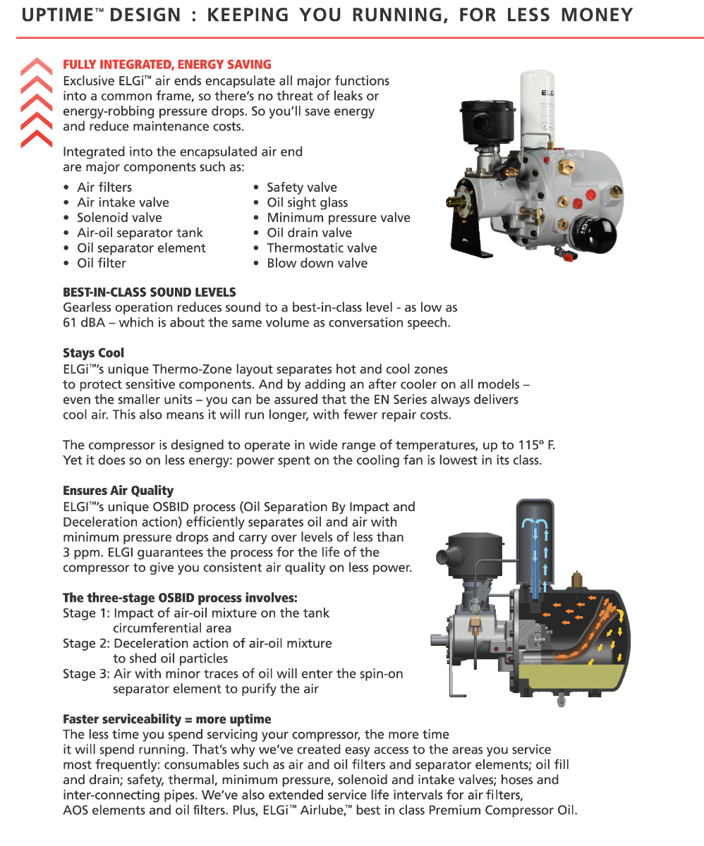 ELGI Variable Speed Drive, 10 HP Rotary Screw Air Compressor offering 38.7 CFM @ 125 PSI, 460-Volt, 3-Phase | EN 07V