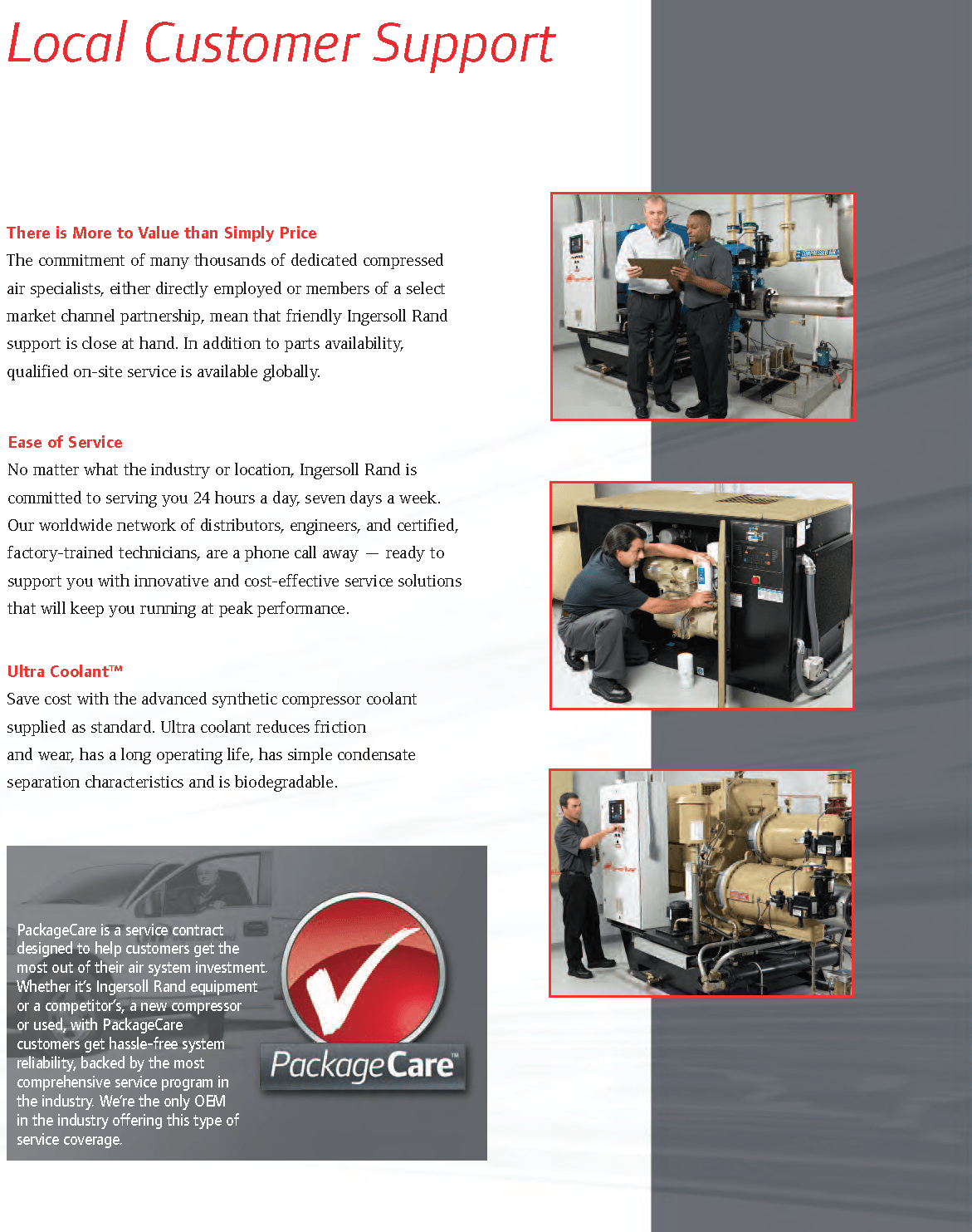 UP- Series 5-15 HP Rotary Screw Air Compressors—The 5-15HP UP Series rotary screw compressors provide “best in class” performance in rotary screw technology. Each compressor package comes standard with either a 208-230/460-3-60 or 230/1/60 ODP (5 & 7.5 HP models) electric motor, air-cooled after-cooler to reduce discharge air temperatures, full voltage motor starter mounted and wired, dual control (AS&S and constant speed control), low sound/ full sheet metal enclosure, package pre-filter, 8000-hour rated Ultra coolant, spin-on oil filter and separator element, A.S.M.E. coded horizontal receiver tank (tank mounted units only) with manual drain, and NEMA-1 electrical protection.