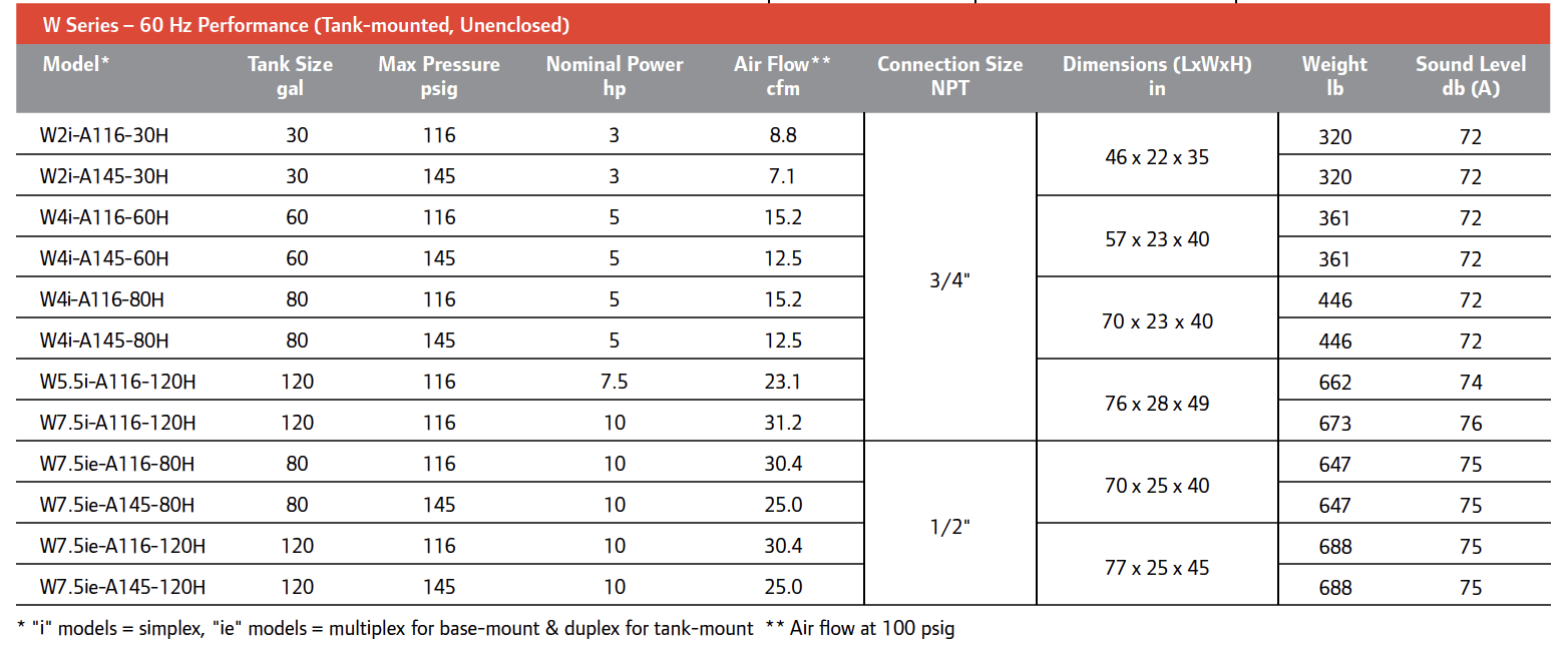 Ingersoll-Rand W2.2i-A116-30H, 3 HP Oilless Scroll Air Compressor 8.6 CFM, 116 PSI, 30 Gallon Air Tank, 208-230-Volt, 1-Phase | 47672061003