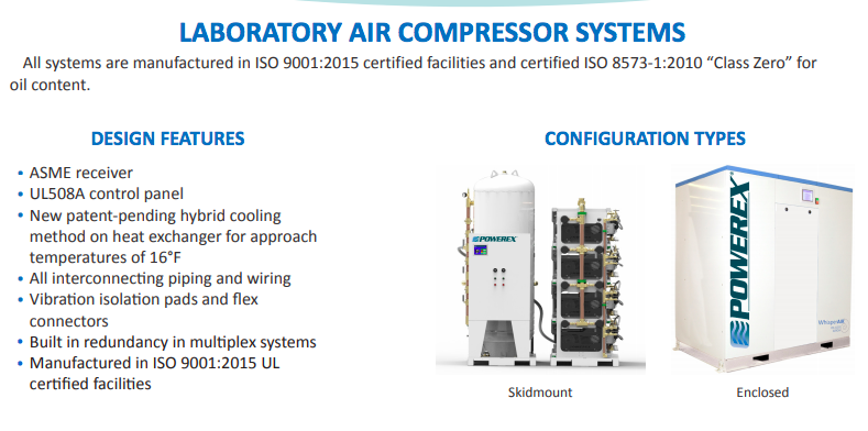Our laboratory air compressors systems feature our proven oil-less scroll technology in a sound enclosure cabinet to minimize noise and system footprint.