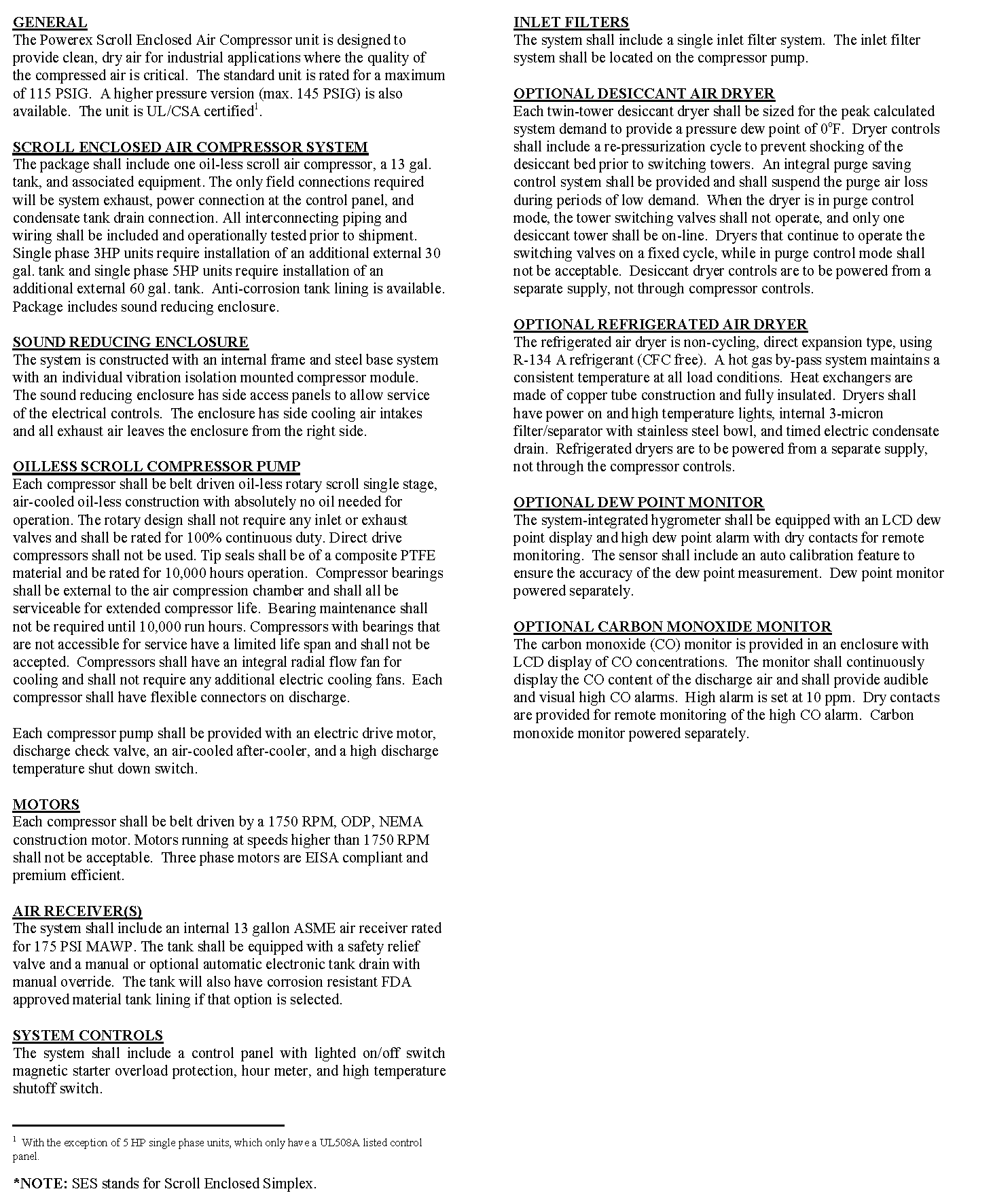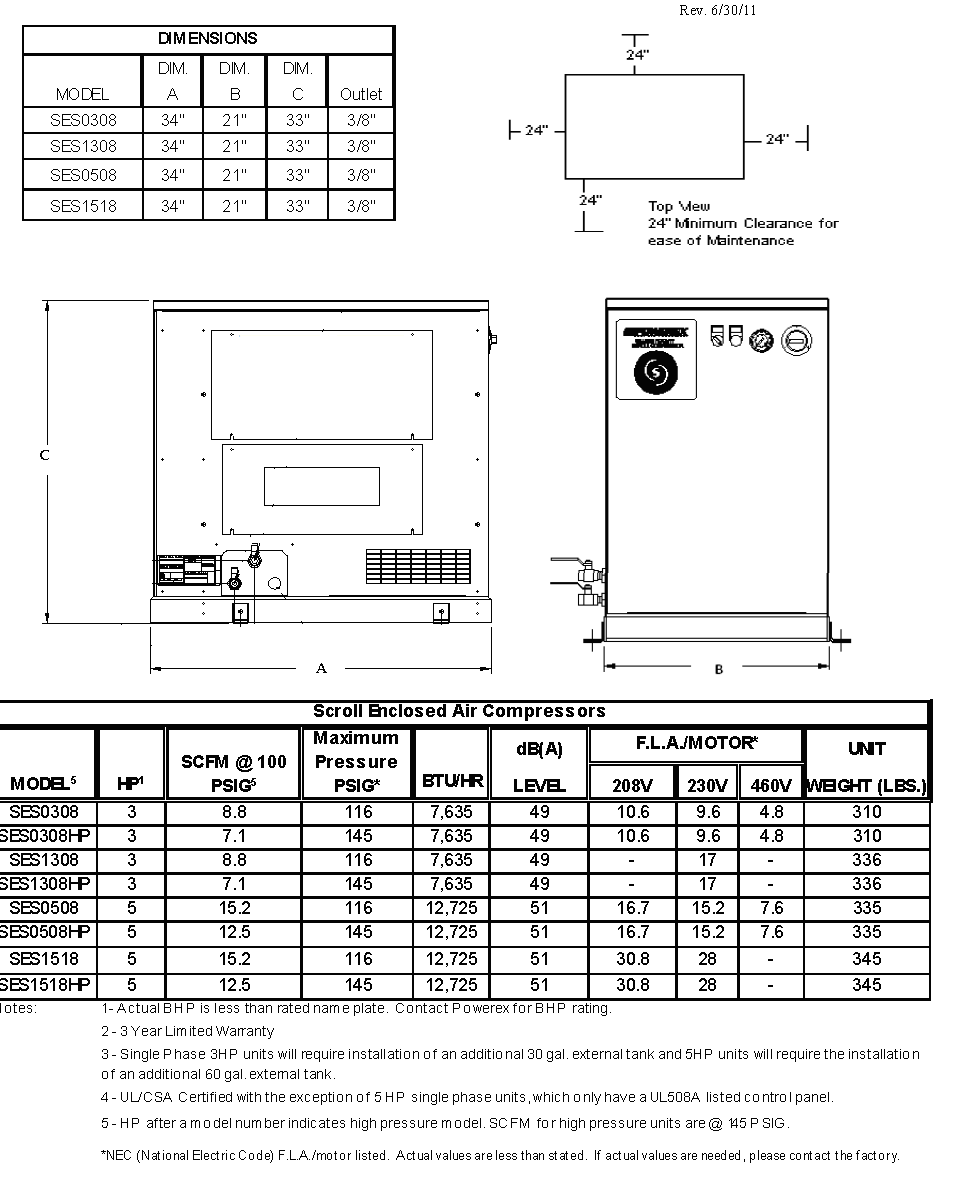 Powerex 3 HP Oilless Scroll Air Compressor 8.8 CFM @ 100 PSI, 208-Volt, 3-Phase SES0308-2-2