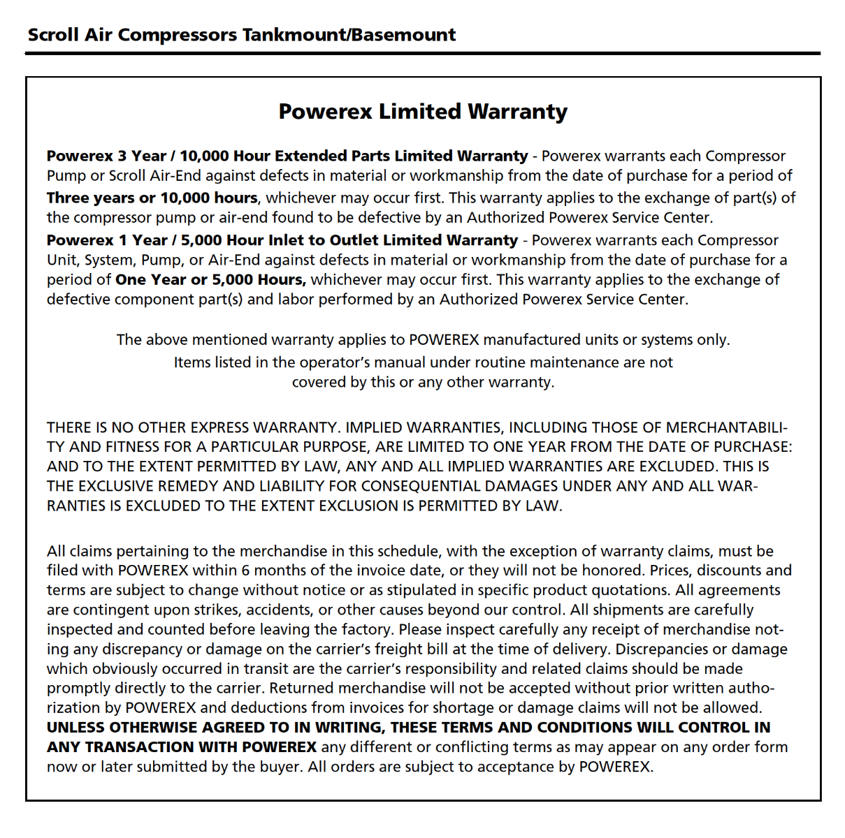 Powerex 5 HP Oilless Scroll Air Compressor High Pressure, 12.5 SCFM @ 145 PSI, 208/230V, 1PH | SBS1517-60-HP