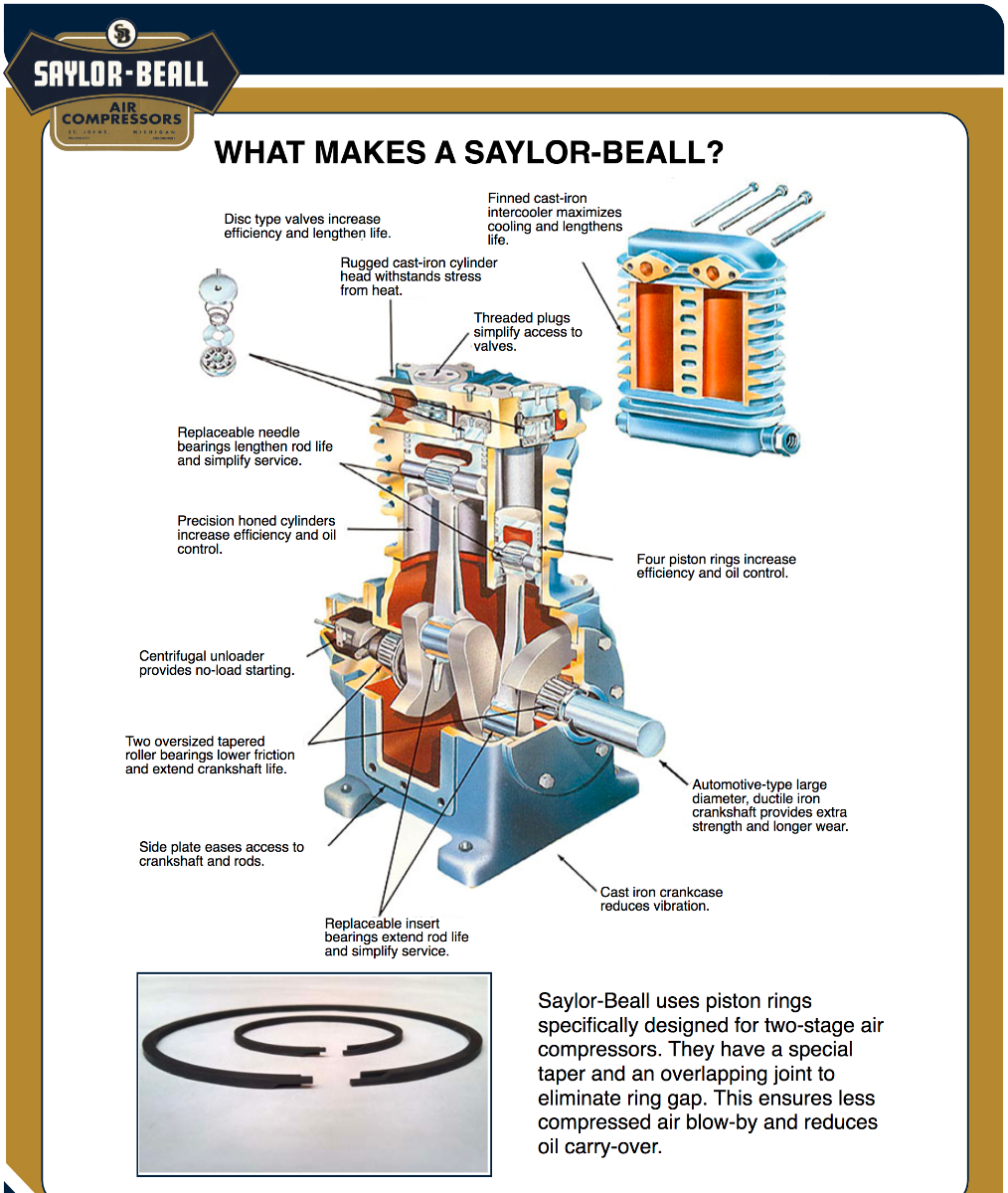 Saylor-Beall 1.5 HP Air Compressor, 5.8 CFM @ 175 PSI, 400 RPM, Base Mounted 460/3/60 | B-703-1-460-3