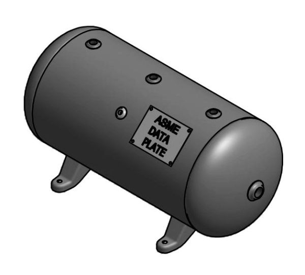 12 Gallon Air Tank Horizontal, 12" x 27", 200 PSI with Feet Only, ASME | A10023