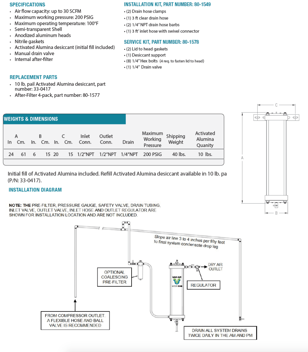 sandblast, run tools or plasma cutters for months and even years before needing new desiccant.